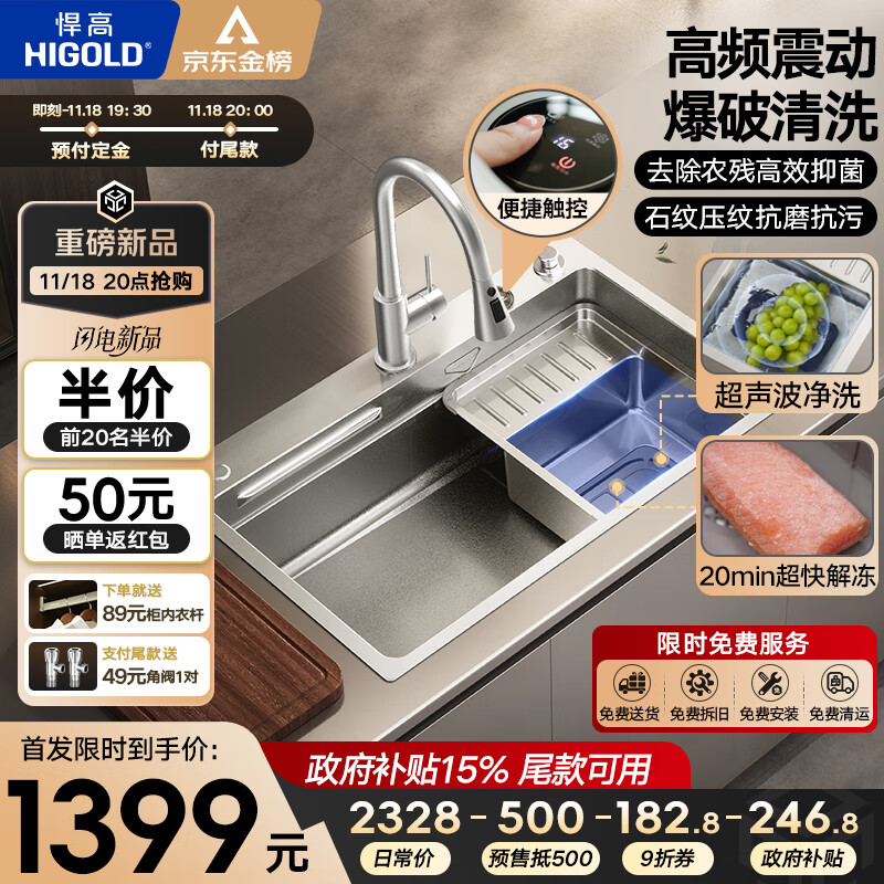 悍高(HIGOLD)智享系列1.0超声波解冻水槽智能水槽洗菜盆厨房净化水槽大单槽