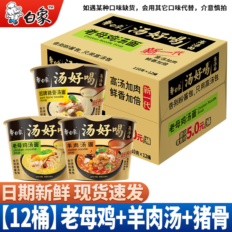 白象方便面汤好喝桶面桶装整箱7口味混搭速食泡面批发免煮速食 【12桶整箱】老母鸡+羊肉汤+猪骨
