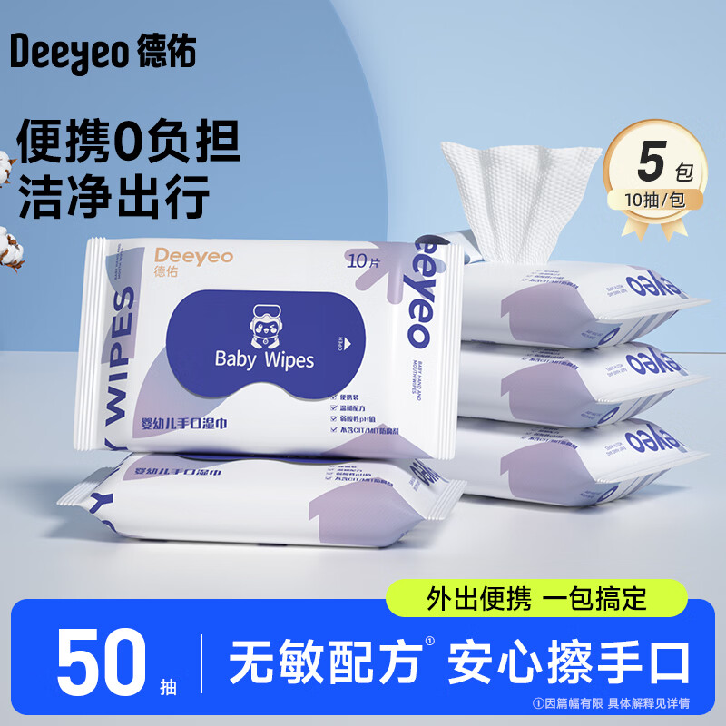 德佑湿巾保湿擦脸巾出行便携卸妆洁面巾柔软亲肤不掉絮化妆湿巾 常规款 10抽 【5包体验装】