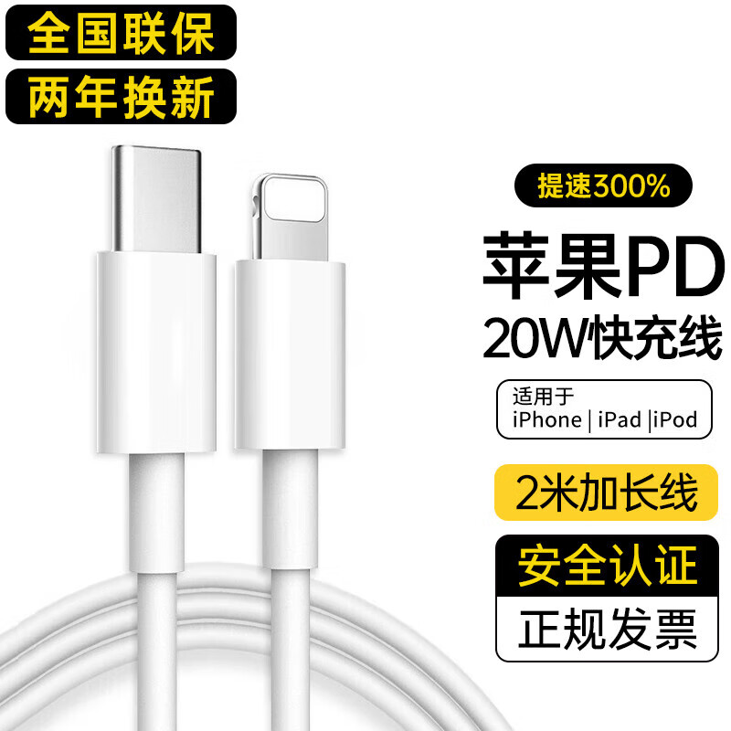 原裴苹果充电线快充数据线适配原装iPhone14/13/12Pro Max/XR/Xs/11/8手机ipad平板车载充电器线 【苹果8-14系列】PD20W快充线2米