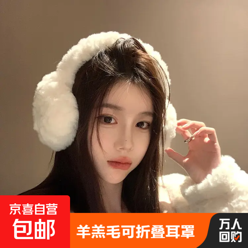 白色羊羔毛耳罩女冬季骑行防风保暖防冻耳捂子防寒护耳套毛绒耳包 #010-米白【羊驼绒】
