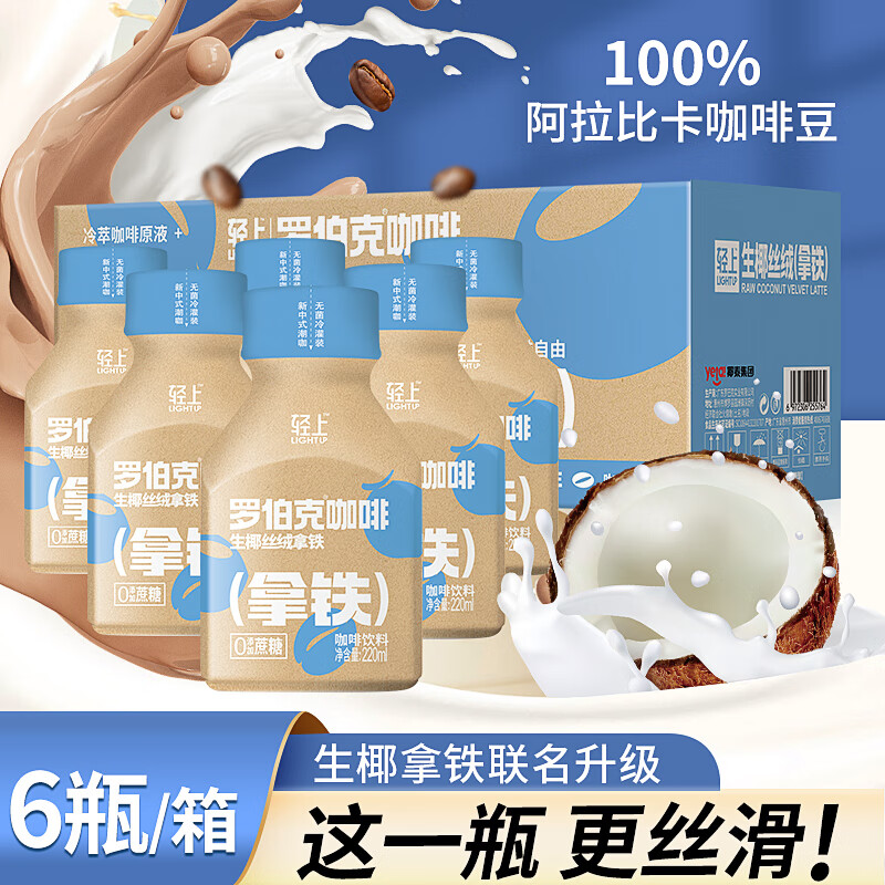 轻上【年货礼盒】原味0糖生椰特添胶原蛋白肽椰子汁植物蛋白饮料 生椰拿铁220ml*6瓶