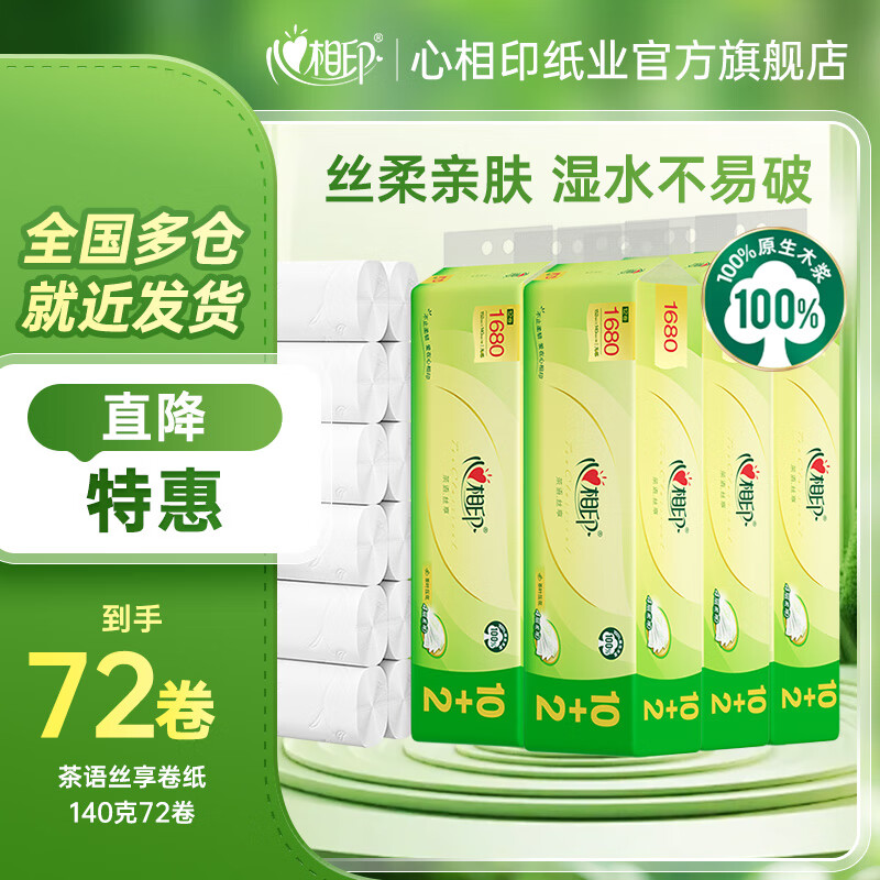 心相印卷纸茶语丝享卷纸家用加厚四层无芯卫生纸厕纸手纸家庭装纸巾 4层 140g/卷*72卷