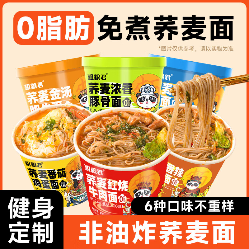 粗粮君荞麦方便面83g桶装减0脂肥肪代餐主食泡面带调料包免煮面饼非油炸 三桶混合装(可备注口味)