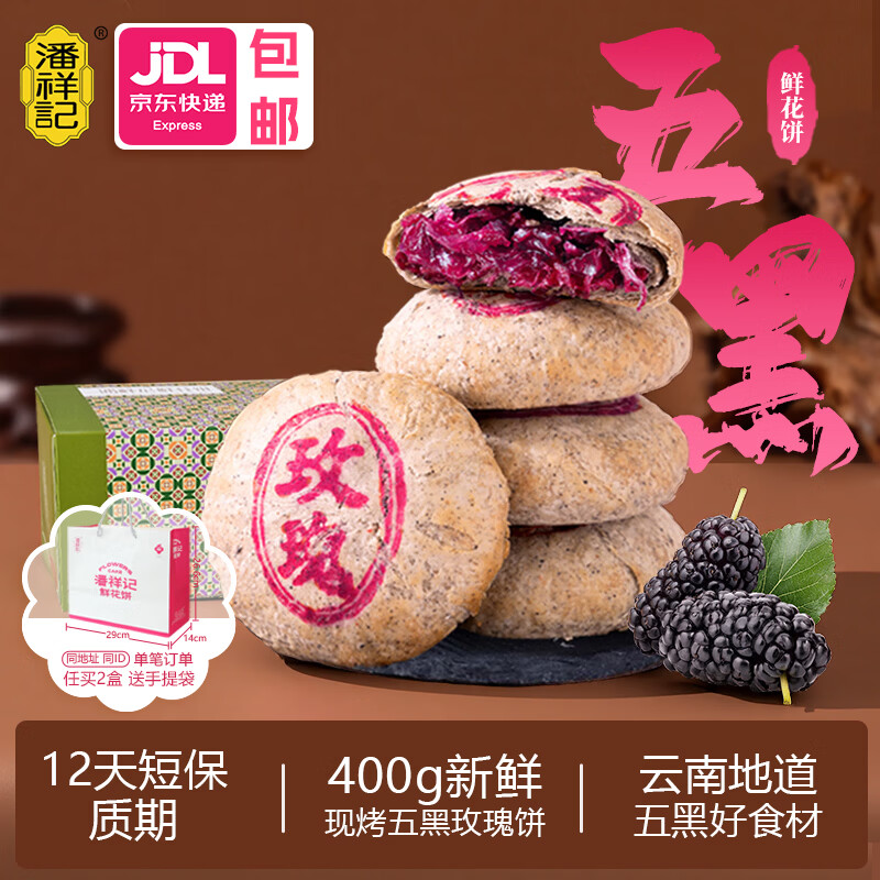 潘祥记 现烤鲜花饼玫瑰饼云南特产玫瑰花饼传统糕点心零食小吃面包早餐 现烤五黑饼8枚*50g(短保12天)