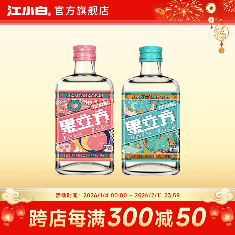 江小白果立方果汁酒 15-23度果酒 低度微醺男女士水果酒新年节日送礼 蜜桃+白葡萄 168mL 2瓶