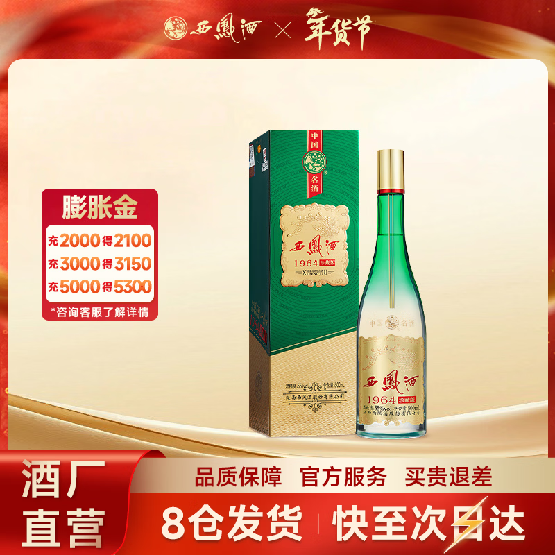 西凤酒【酒厂直营 正品保障】1964珍藏版凤香型 白酒送礼 55度 500mL 1盒 单瓶装