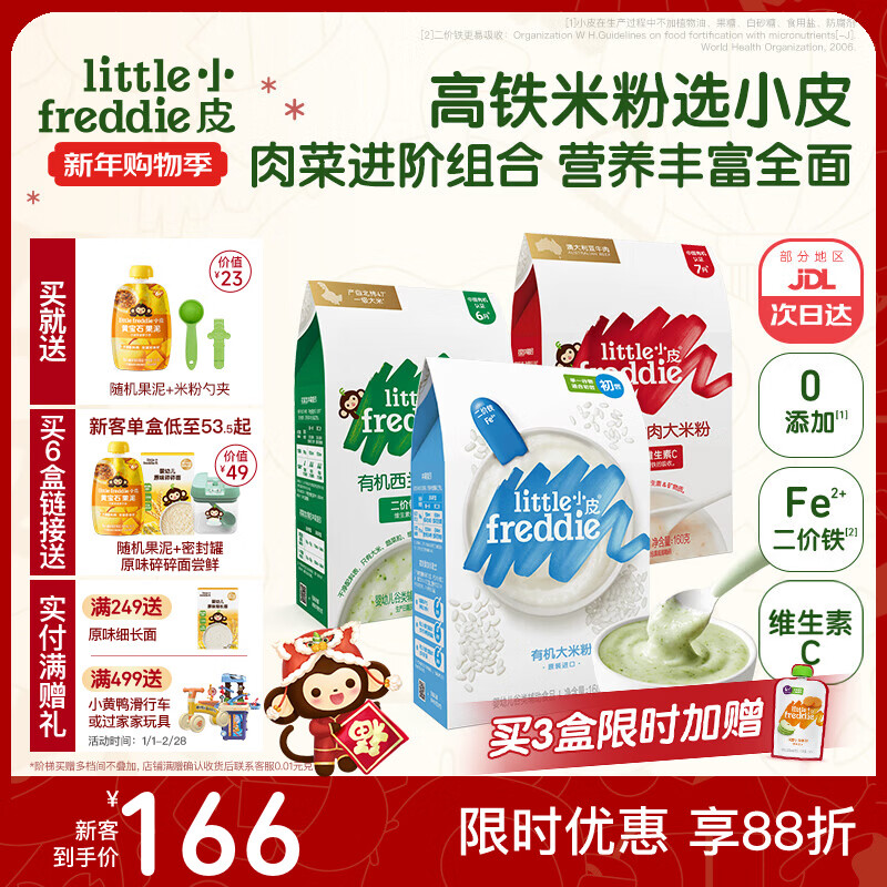 小皮(Little Freddie)高铁米粉有机 婴儿宝宝辅食营养低敏米糊米粉婴儿6个月以上 【初尝到18月+】原味西兰花番茄牛肉*3盒