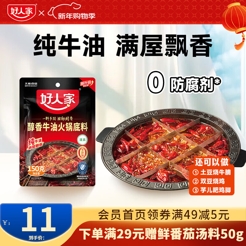 好人家0添加小块装火锅底料 【1-2人食】醇香牛油火锅150g