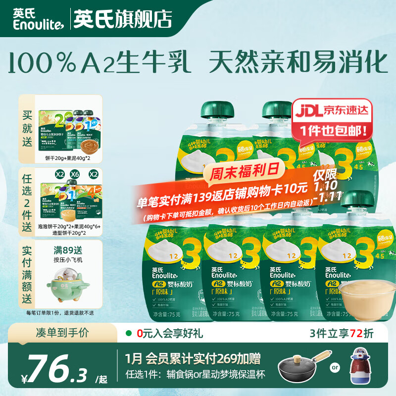 英氏畅润多果泥辅食泥 酸奶 整箱礼盒装(适用于6个月以上宝宝) 【一周囤货组】3阶A2婴标酸奶 原味 75g*7袋