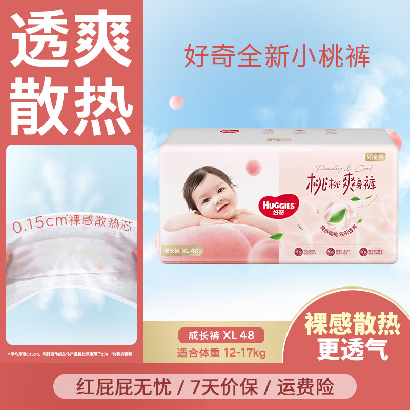 好奇(Huggies)铂金装成长裤婴儿拉拉裤小桃裤夏日超薄透气 XL48片(12-17kg)