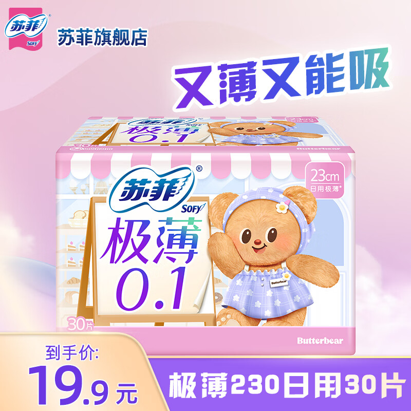 苏菲卫生巾黄油小熊夜用超熟睡420mm柔棉感超长整箱组合装姨妈巾 【大包装】极薄日用230mm30片