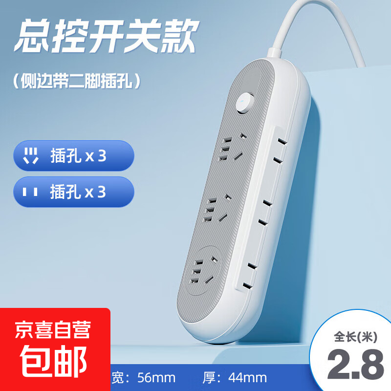 【京东物流】家用插座正品带usb插排插线板多功能排插接线板插板带线大功率 高贵灰-15孔 2.8米【带边插款】