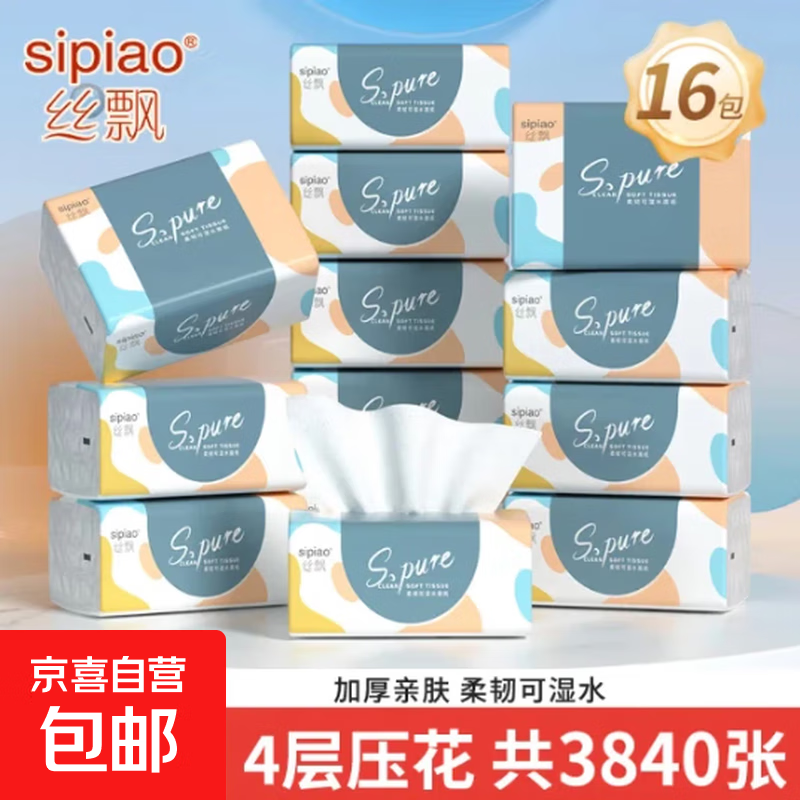 丝飘抽纸家用240张超软抽纸适用纸巾宿舍卫生纸巾批发加厚4层 4层 240张*16包
