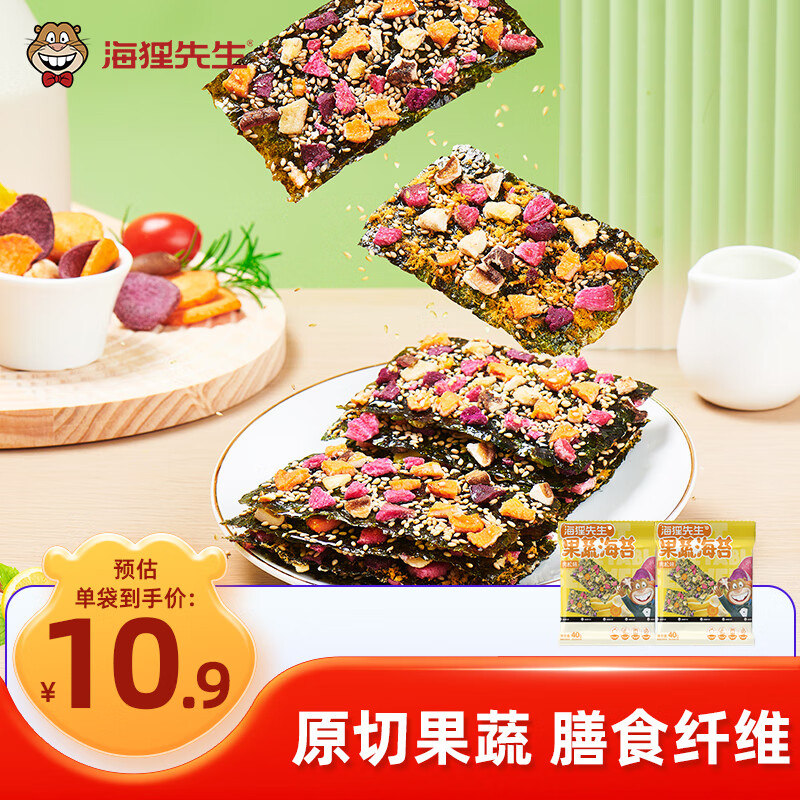 海狸先生果蔬海苔脆夹心海苔脆休闲宝宝儿童零食即食海苔大片烤紫菜多口味 海苔肉松味40g*2袋