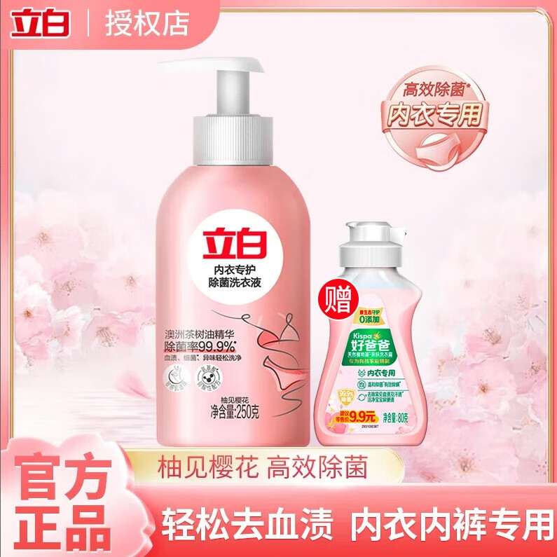 立白内衣裤洗衣液洗内裤专用除菌抑菌手洗去血渍清洗剂 【330g】250g赠小瓶80g