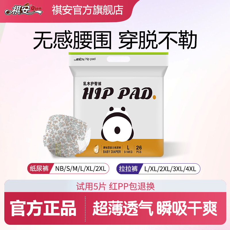 祺安T1熊猫乳木果油宝宝护臀系列超薄透气新生儿尿裤拉拉裤成长裤 【小包装】纸尿裤L码26片