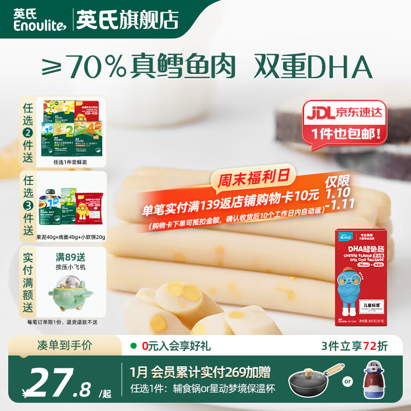 英氏【4阶专区】婴幼儿零辅食 泡芙米饼干奶酪 12-18月龄宝宝零食 忆小口鳕鱼肠芝士味