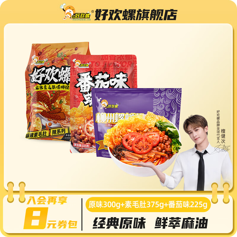 好欢螺螺蛳粉经典原味柳州特产袋装方便速食酸辣粉丝米粉螺丝粉夜宵小吃 原味300g+素毛肚375g+番茄味225g