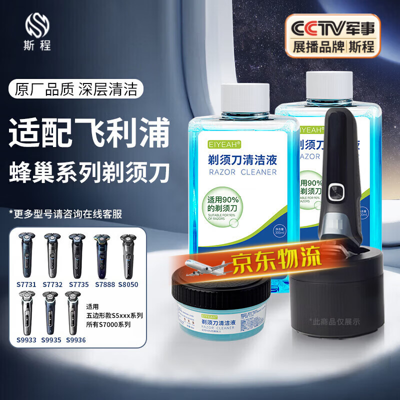 斯程适配飞利浦剃须刀清洁液替换装适用S7系/S8系/S9系高端系列刮胡刀 S7731/8050/9936通用清洗液CC13 品质|蜂巢系列专用清洗液1瓶+2瓶补充液