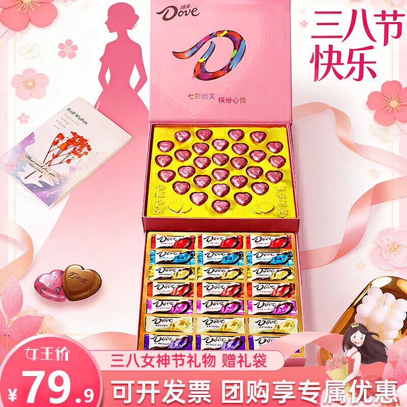 德芙(Dove)心语巧克力礼盒520情人节生日礼物送女友女生老婆表白母亲节实用 德芙心语七彩双层礼盒装