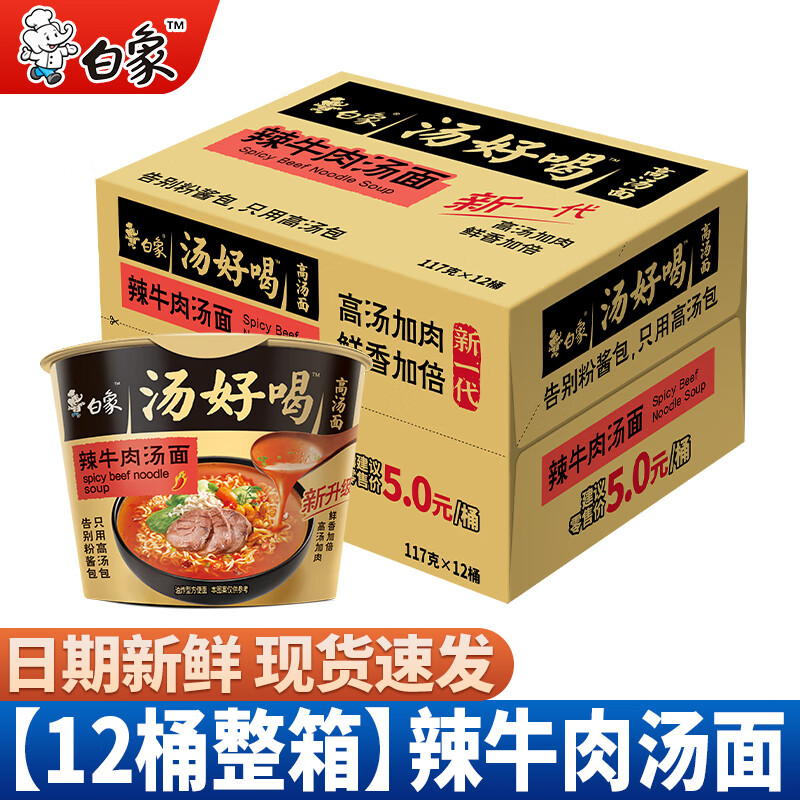 白象方便面汤好喝桶面桶装整箱7口味混搭速食泡面批发免煮速食 【12桶整箱】辣牛肉汤