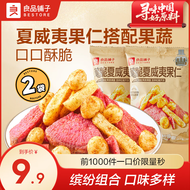 良品铺子奶香夏威夷果大罐装夏威夷果家庭量贩装零食 【酥脆】薯脆夏威夷果仁30g*2袋 ,