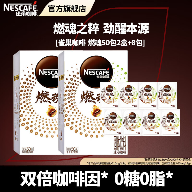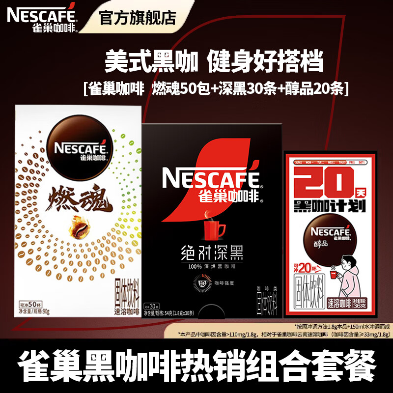 雀巢(Nestle)咖啡醇品深黑燃魂美式无糖低脂速溶纯黑咖啡粉办公健身 燃魂50包+深黑30条+醇品20条