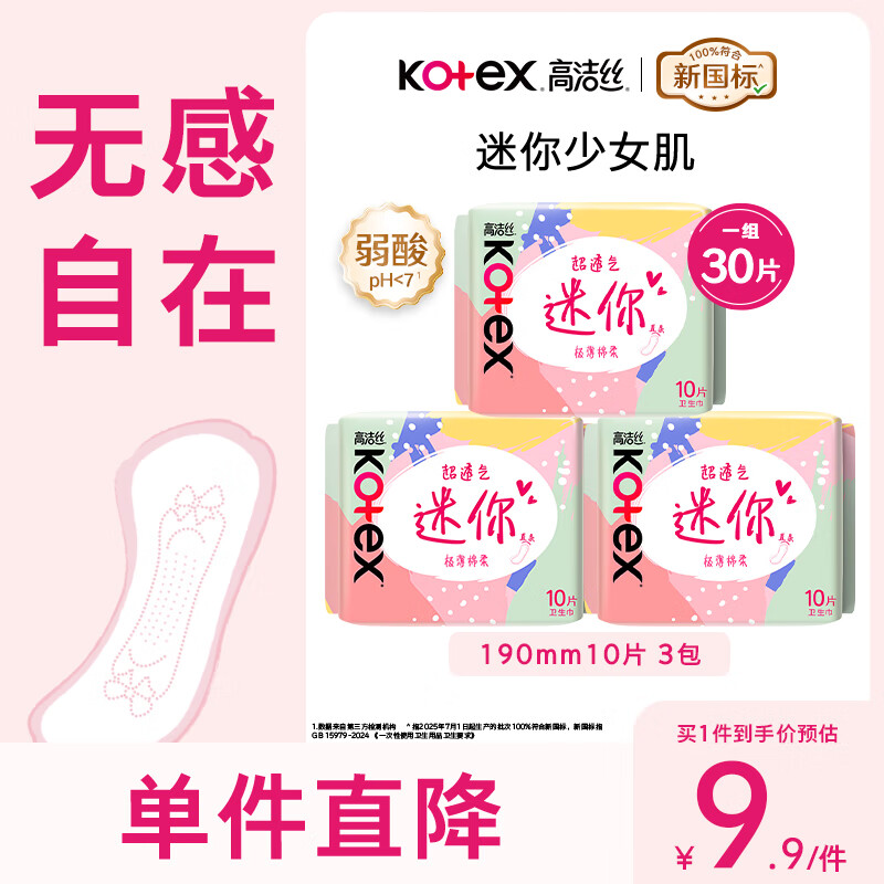 高洁丝日用迷你小Q包透气亲肤护垫卫生巾姨妈巾 【直条】迷你巾190mm30片