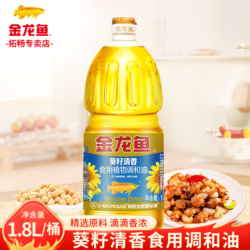 金龙鱼葵花籽清香型食用植物调和油1.8L炒菜烹饪食用油烘焙烧烤批发粮油 1.8L*1桶 【经济实惠】