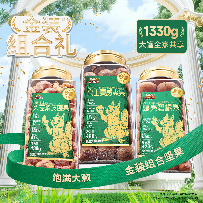 三只松鼠量贩夏威夷果大颗粒坚果零食特产小吃休闲食品孕妇健康干果送礼 【含礼袋】金装坚果组合(夏威夷果+紫皮腰果+碧根果)