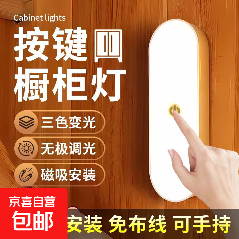 智能磁吸体感式厨房橱柜灯充电小夜灯现代简约磁吸长条灯 【按键款-140mm长条灯】三色