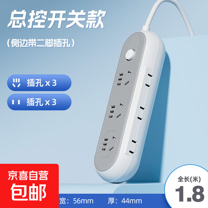 【京东物流】家用插座正品带usb插排插线板多功能排插接线板插板带线大功率 高贵灰-15孔 1.8米【带边插款】
