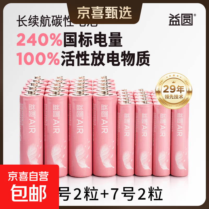 益圆5号电池7号五号碳性干电池七号适用于耳温枪/血氧仪/血压计/血糖仪/鼠标 5号2粒+7号2粒