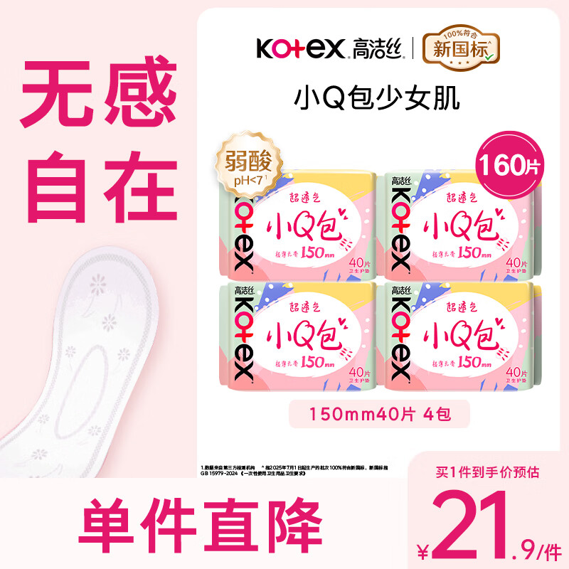 高洁丝日用迷你小Q包透气亲肤护垫卫生巾姨妈巾 【实惠】小Q包护垫150mm160片