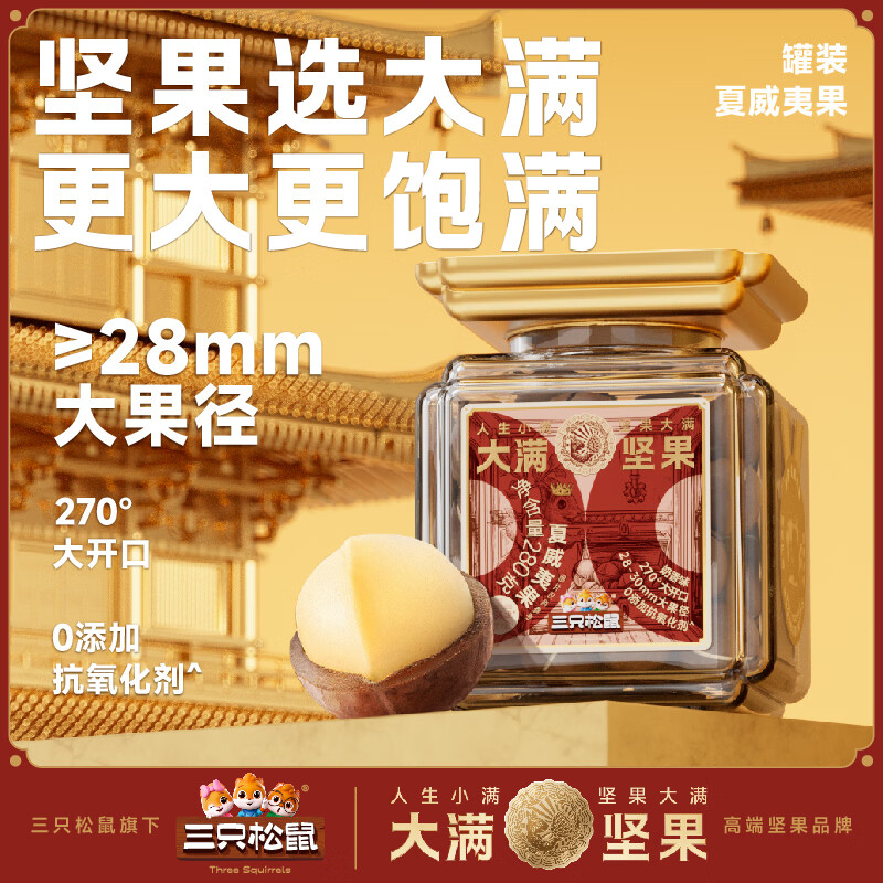 三只松鼠量贩夏威夷果大颗粒坚果零食特产小吃休闲食品孕妇健康干果送礼 【品质坚果】罐装夏威夷果/奶香味/280g
