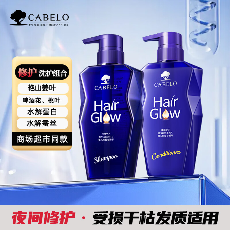 卡蓓诺(CABELO)夜间修护洗发水 舒缓头皮柔顺秀发 受损干枯发质适用【日本进口】 【修护秀发】夜间修护 洗护组合350ml*2瓶