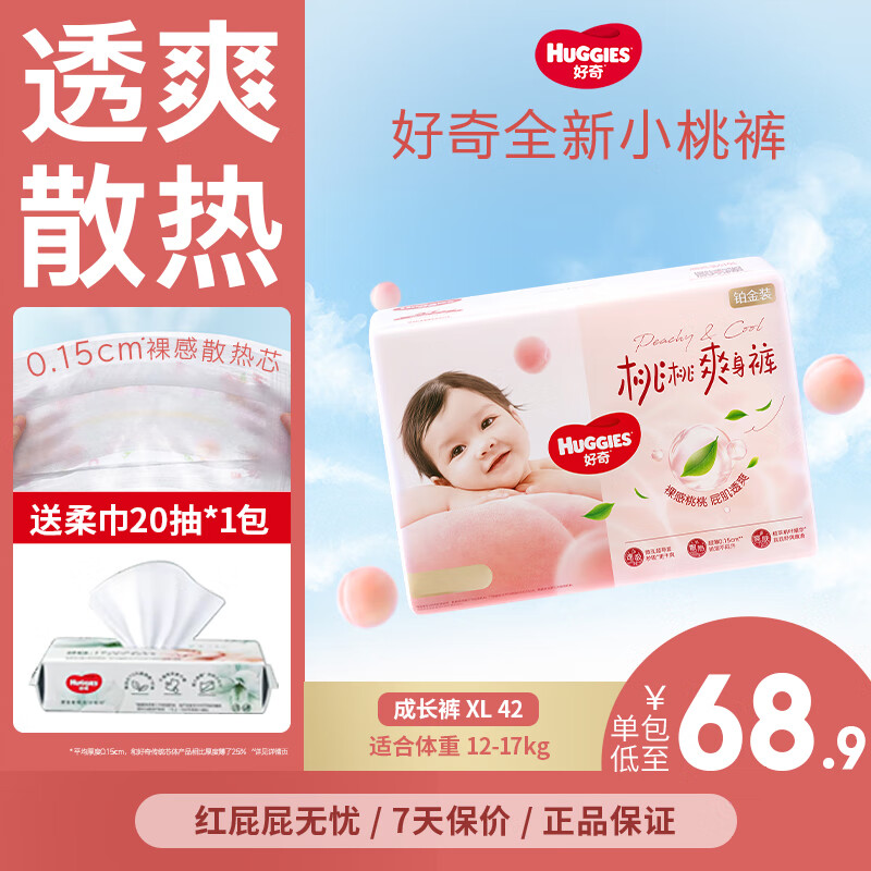好奇京东快递铂金装成长裤婴儿超薄透气尿不湿 成长裤XL42+柔巾20抽