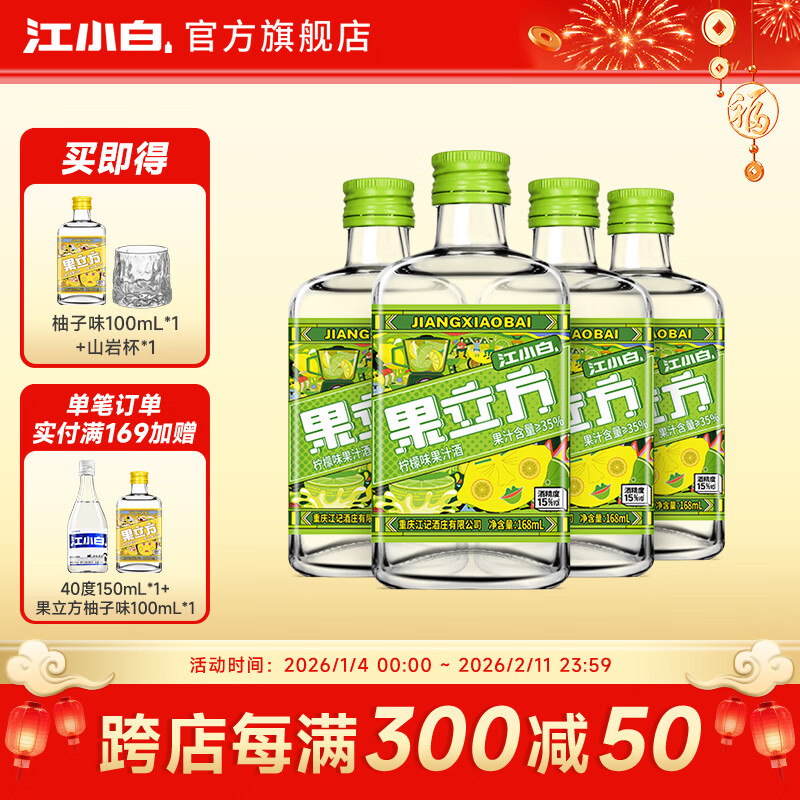 江小白果立方果汁酒 15-23度果酒 低度微醺男女士水果酒新年节日送礼 柠檬味 168mL 4瓶
