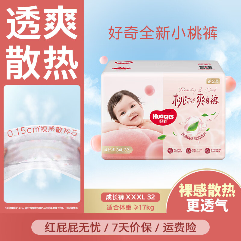 好奇(Huggies)铂金装成长裤婴儿拉拉裤小桃裤夏日超薄透气 XXXL32片(17kg以上)