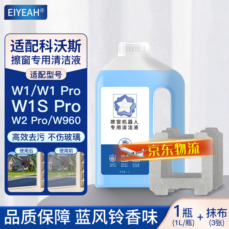 EIYEAH适配科沃斯窗宝机器人 清洁液 清洗剂 清洁剂 窗宝清洗液1瓶/W1/W2/W960抹布3个