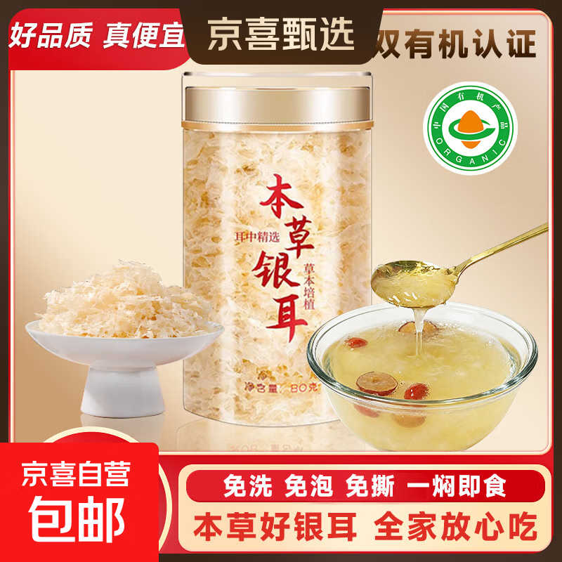 有机本草银耳免洗免煮焖泡即食口感软糯营养高山银耳羹 有机本草银耳80g*1罐
