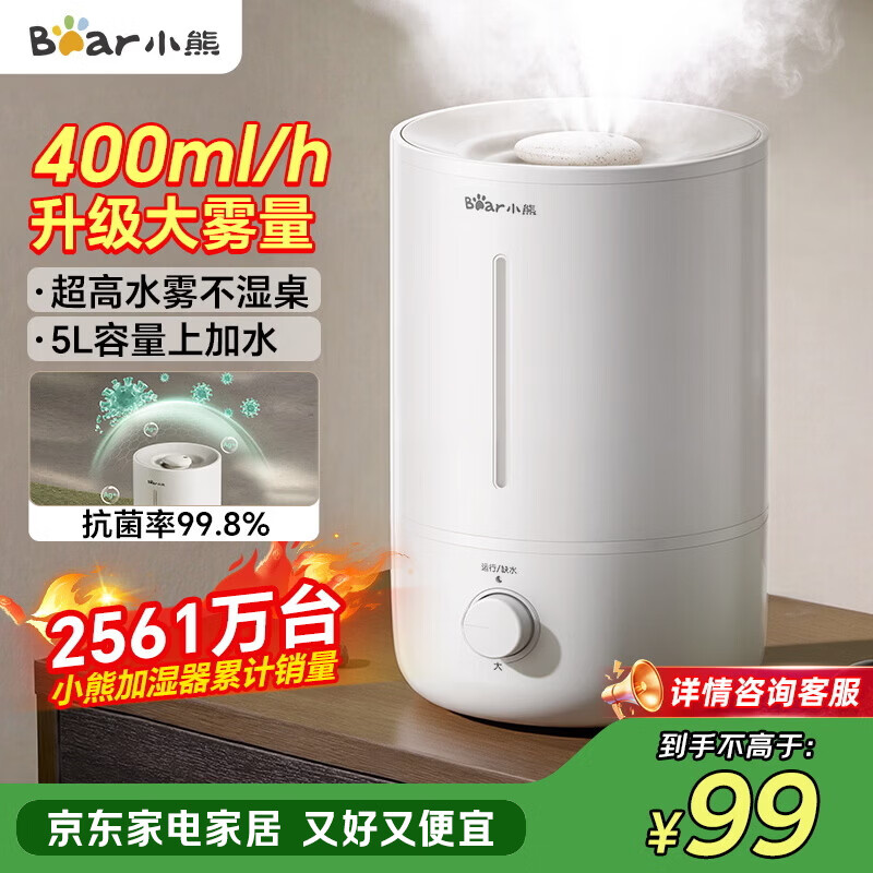 小熊(Bear)加湿器家用卧室 空气加湿母婴幼儿 办公室桌面小型加湿机JSQ-Z50G2