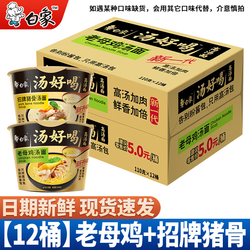 白象方便面汤好喝桶面桶装整箱7口味混搭速食泡面批发免煮速食 【12桶整箱】猪骨+鸡汤