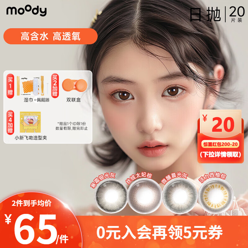 moody美瞳日抛20片小情绪系列日抛大小直径装彩色隐形眼镜 礼物 【NEW】黑巧马赛克 0度