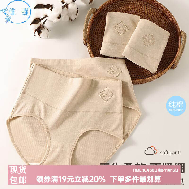 稚蝶纯棉高腰收腹包臀新疆彩棉7A抗菌裆女士内裤 全棉新疆长绒棉 肉色 字母 1条 2XL 120-140斤