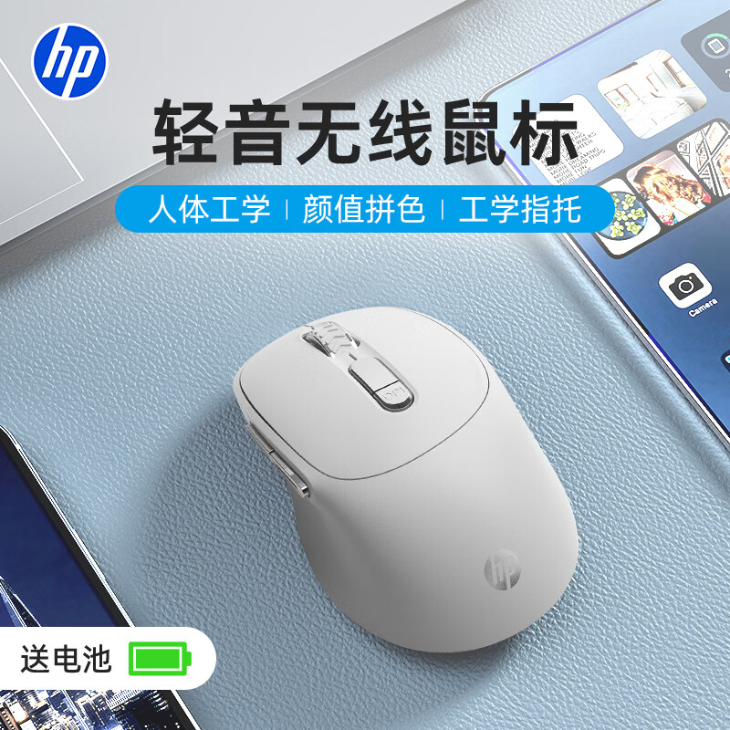 惠普(HP)无线鼠标 人体工学学习办公静音游戏便携 台式机笔记本电脑 【白色】工学指托