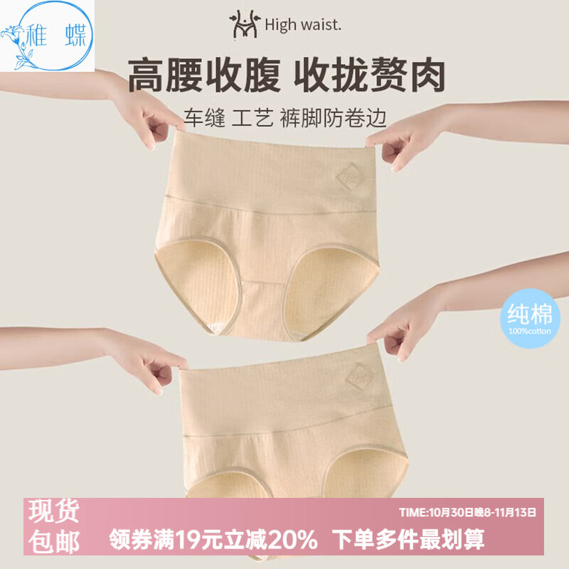 稚蝶纯棉高腰收腹包臀新疆彩棉7A抗菌裆女士内裤 全棉新疆长绒棉 肉色 字母 1条 XL 100-120斤
