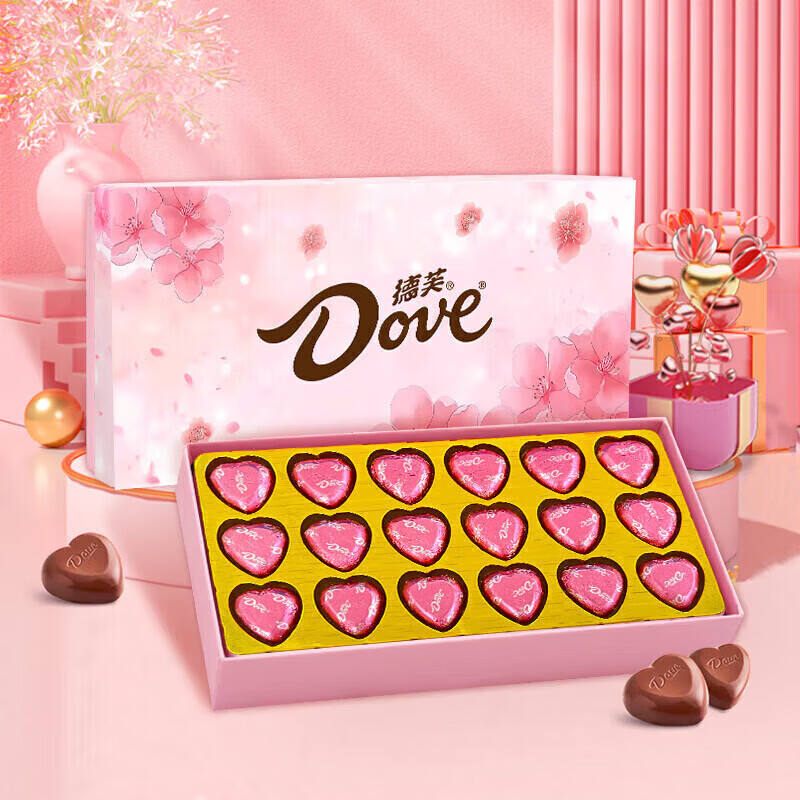 德芙(Dove)心语巧克力礼盒520情人节生日礼物送女友女生老婆表白母亲节实用 18粒心语粉色礼盒95g