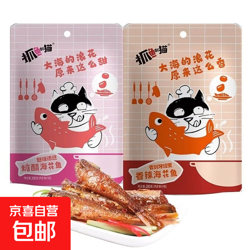 抓鱼的猫 香辣鱼仔鱼干休闲零食特产开袋即食 7g/袋 糖醋味海花鱼10包 10包